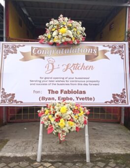 BDP-006Bunga papan digital printing dukacita ukuran kecil 2x1m. Memakai bunga hidup.